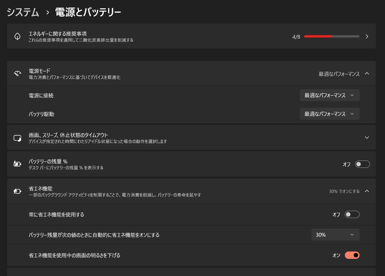 POINT省電力モードはパソコンの動きが悪くなりますのであまりお勧めしません。