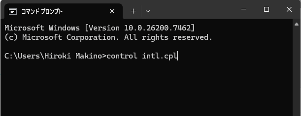 ② 出てきたところに cmd と入力してエンター →→→→ 黒い画面(コマンドプロンプト)が出たら control intl.cpl と入れて Enter