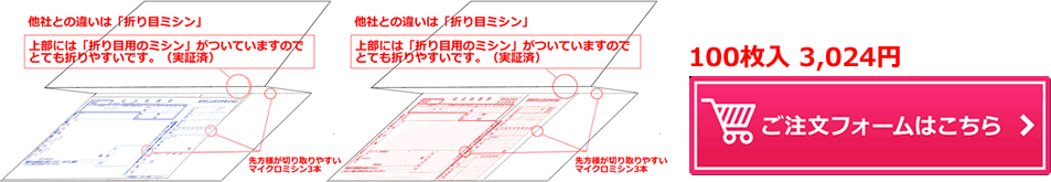 上図のようにすんなり折り曲げるとちょうど「長3窓付きの封筒」に入ります。宛名面(〒・住所・氏名+様)を窓に来るように設定して「入れ間違い」が起こらない完璧な発送が手早く行えます。